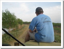 Saturday evening, {while Griff was fishing}, me, Mom and Dad all went for a ride in the old mail truck my Uncle Steve bought. Dad decided it was too dusty to ride in the back so he rode up top. Well, he first started out on the hood, then moved to the roof.